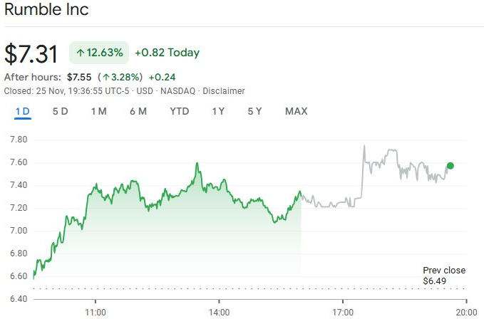 Thông báo của Rumble đã nhận được sự đồng thuận tích cực từ các nhà đầu tư. Cổ phiếu của Rumble (RUM) tăng 13%, đạt mức 7,31 USD, và tiếp tục tăng thêm 4% trong giao dịch ngoài giờ. Điều này cho thấy sự tin tưởng của thị trường vào quyết định táo bạo nhưng đầy tiềm năng của công ty