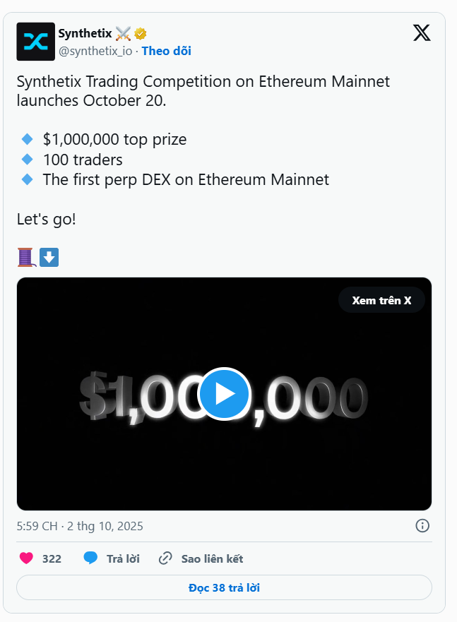 Synthetix dự kiến tổ chức các cuộc thi giao dịch nhằm thu hút sự chú ý của cộng đồng, tạo ra sự cạnh tranh lành mạnh và thúc đẩy hoạt động giao dịch trên nền tảng.