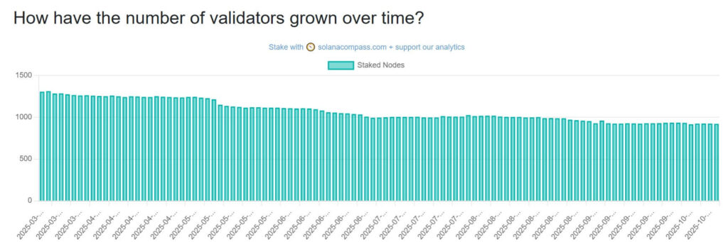 Trong khi đó, mạng lưới validator của Solana đã trở nên gọn nhẹ hơn đáng kể. Do chính sách của Solana Foundation cắt giảm hỗ trợ đối với các validator nhỏ và giảm số lượng validator mới, hiện tại, khoảng 20 validator lớn nhất kiểm soát khoảng 33% tổng stake của mạng lưới.
