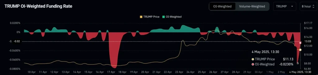 Sự suy giảm này không phải là ngẫu nhiên. Nhiều nhà giao dịch đã dự đoán sự giảm giá tiềm năng của TRUMP trong tuần này. Tỷ lệ tài trợ cho TRUMP đang ghi nhận mức âm sâu, đây là mức giảm mạnh nhất trong ba tuần qua. Điều này cho thấy các nhà đầu tư bán khống đang hoạt động tích cực, tìm cách kiếm lợi từ sự giảm giá của đồng token này.