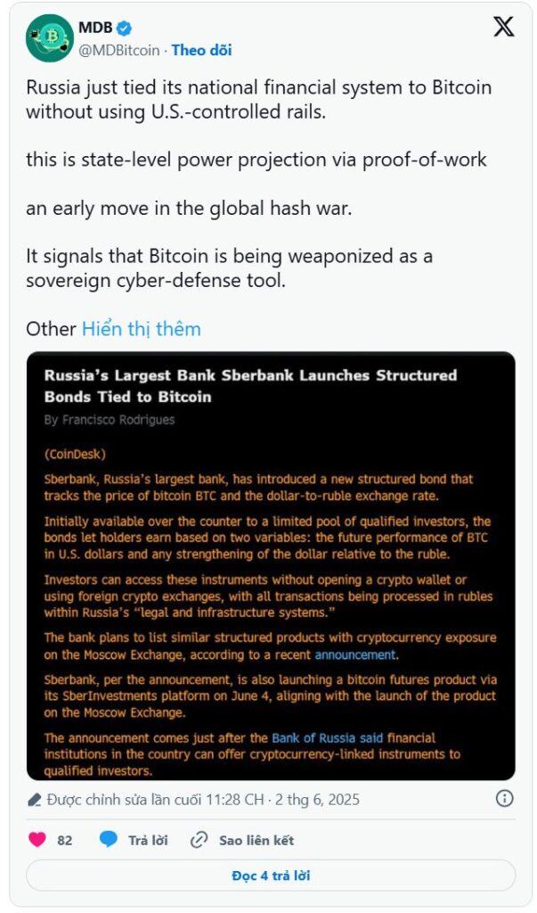 Một điểm đáng chú ý là các tổ chức tài chính tại Nga hiện không cho phép người dùng lưu trữ Bitcoin trực tiếp. Các nhà đầu tư đủ điều kiện có khả năng thu lợi nhuận thông qua việc mua bán sản phẩm liên quan đến tiền điện tử, nhưng họ không thể thực sự tham gia vào ngành công nghiệp Web3. Thực tế này cho thấy một vấn đề lớn: mặc dù chính phủ Nga nhận thấy tiềm năng của Bitcoin, nhưng họ lại có xu hướng duy trì sự kiểm soát chặt chẽ đối với nó.