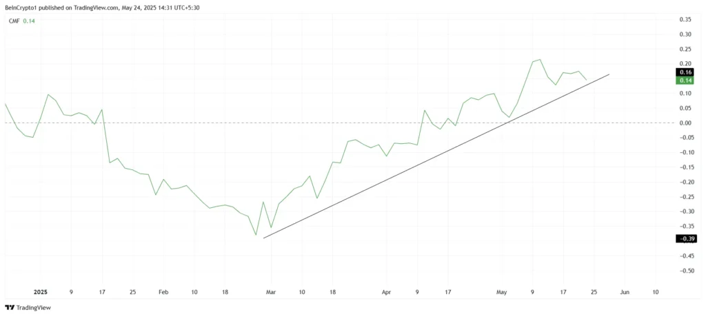 Chỉ báo Chaikin Money Flow (CMF) cũng cung cấp những dấu hiệu tích cực, cho thấy dòng vốn đang liên tục đổ vào BONK trong những tuần gần đây. Những dòng tiền mạnh mẽ này không chỉ cho thấy sự tích cực của các nhà đầu tư mà còn hỗ trợ nền tảng giá vững chắc cho BONK. Đồng thời, xu hướng tích cực của toàn bộ thị trường tiền điện tử cũng làm tăng cường thêm động lực cho BONK, hình thành điều kiện thuận lợi cho nhu cầu tăng cao từ các nhà đầu tư.
