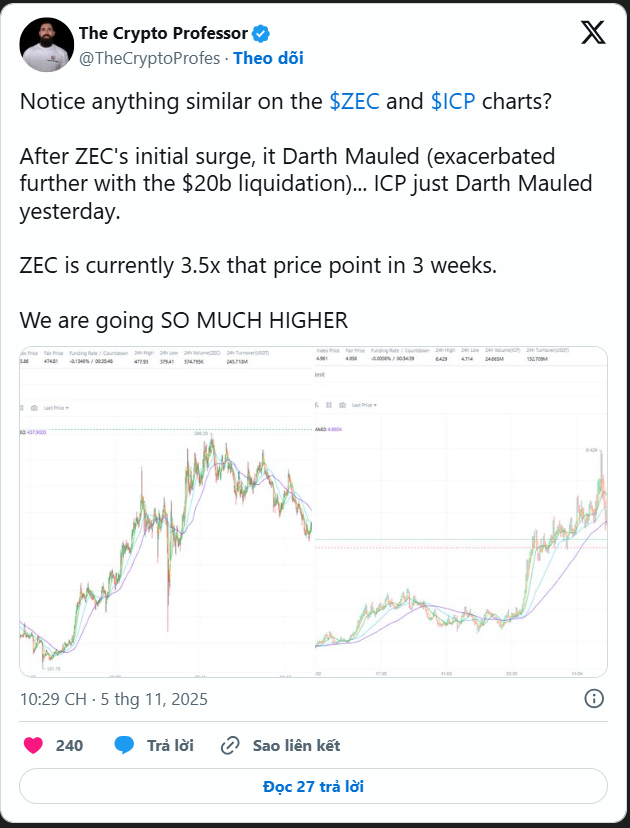 - Các tài sản chú trọng đến quyền riêng tư như Zcash (ZEC) hay Dash (DASH) đang thể hiện rõ xu hướng này.