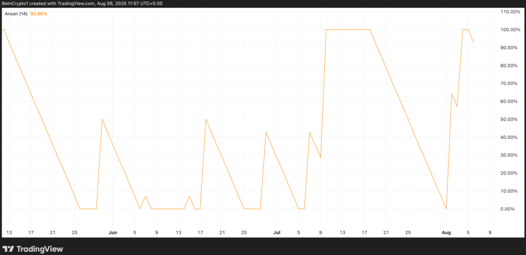 Chỉ số Aroon Up của MNT, hiện đã đạt 92.86%, cũng củng cố thêm dự báo tích cực. Chỉ số này là một công cụ phân tích nhằm xác định phương hướng và sức mạnh của xu hướng, bằng việc đo lường thời gian kể từ các mức cao hoặc thấp gần đây. Khi chỉ số Aroon Up gần đạt 100%, điều này cho thấy hành động giá đã liên tục đạt các đỉnh mới, cho thấy động lực tăng trưởng mạnh.