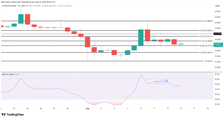 Sự tương đồng giữa Pi Coin và memecoin đồng nghĩa rằng bất kỳ sự phục hồi nào trong lĩnh vực này cũng sẽ thế hiện rõ nét trong biến động giá của Pi Coin. Trên biểu đồ hàng ngày, chỉ số RSI cho thấy một sự phân kỳ tăng, khi giá tạo đỉnh thấp hơn nhưng RSI lại tạo đỉnh cao hơn. Hiện tại, RSI đang giữ ở mức khoảng 43,71, và việc vượt qua mốc 47 sẽ giúp xác nhận một đỉnh cao hơn mới, từ đó củng cố xu hướng tăng trưởng của giá.