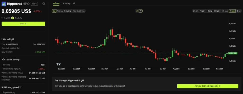 Dù hồ sơ giao dịch của HPO còn hạn chế và vốn hóa thị trường hiện tại chỉ khoảng 62 triệu USD, với khối lượng giao dịch trong 24 giờ đạt khoảng 1.7 triệu USD, nhưng dự án đã ghi nhận những tín hiệu tích cực. Cụ thể, trong tháng 11, giá của token HPO đã tăng trưởng khoảng 35%, cho thấy sự quan tâm và tiềm năng của dự án trong cộng đồng đầu tư.
