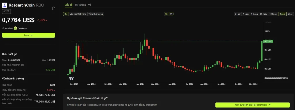 ResearchCoin (RSC) được phát triển bởi ResearchHub – một nền tảng cho phép người dùng kiếm thưởng RSC bằng cách đóng góp kiến thức khoa học cho cộng đồng. Mức thưởng mà mỗi người nhận được phụ thuộc vào giá trị đóng góp và sự công nhận từ các thành viên khác trong cộng đồng.