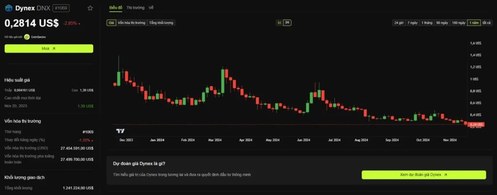 Vốn hóa của DNX hiện chưa tới 30 triệu USD, với khối lượng giao dịch hàng ngày khoảng 1.2 triệu USD. Mặc dù hiệu suất giá của DNX chưa thật sự nổi bật so với các dự án DeSci khác gần đây, nhưng vẫn đánh dấu sự phát triển trong lĩnh vực mà dự án đang hướng tới.