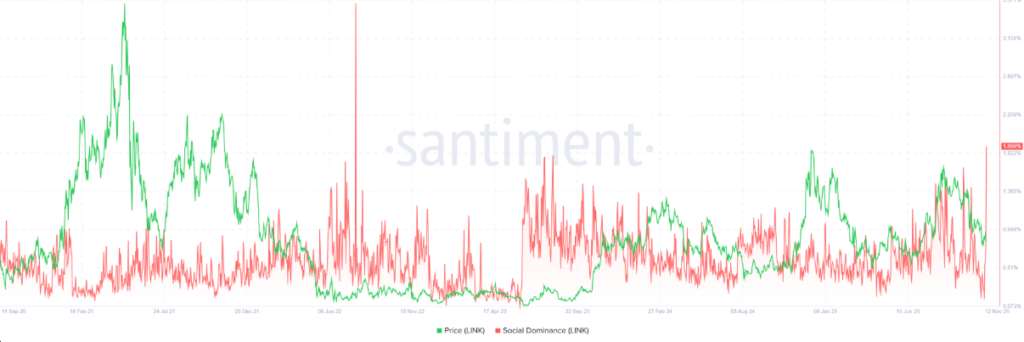 Chỉ số Social Dominance của Chainlink đã có sự tăng trưởng vượt bậc, từ mức 0,15% vào cuối tuần trước lên 1,89% vào ngày hôm nay, mức cao nhất kể từ tháng 7/2022. Điều này cho thấy sự quan tâm ngày càng lớn của cộng đồng và các nhà đầu tư đối với dự án, từ đó thúc đẩy kỳ vọng về giá.