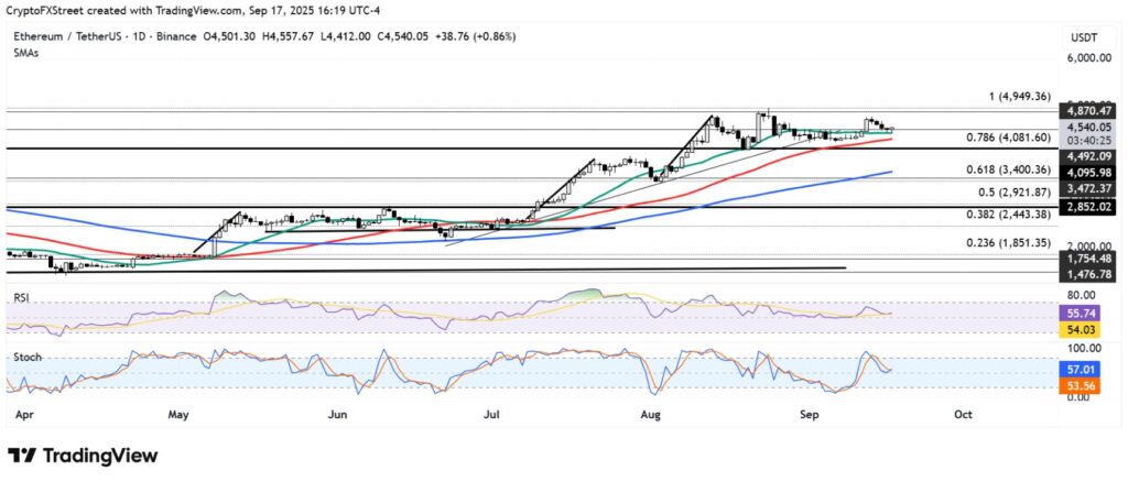 Hiện tại, Ethereum đang nỗ lực phục hồi từ đường trung bình động đơn giản (SMA) 20 ngày sau khi bị từ chối ở mức đỉnh lịch sử (ATH) vào thứ Bảy tuần trước. Nếu không giữ vững được mức này, giá có thể lùi về vùng hỗ trợ gần đường SMA 50 ngày, tương ứng từ 4.300 đến 4.400 USD, nơi mà các nhà đầu tư đã tích lũy khoảng 1,7 triệu ETH trong những tuần gần đây. Trong kịch bản thị trường tiếp tục chịu áp lực bán, mức giá tâm lý 4.000 USD sẽ trở thành ngưỡng hỗ trợ quan trọng.