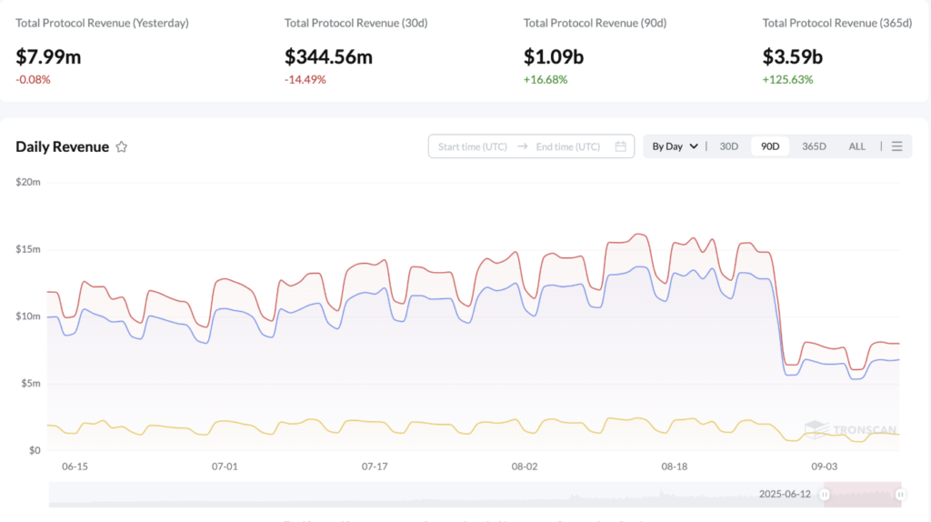 Trong khi nhu cầu bán lẻ đối với Tron đang gia tăng mạnh mẽ, thì doanh thu từ mạng lưới lại đang có dấu hiệu sụt giảm nghiêm trọng. Theo thông tin từ TronScan, doanh thu giao thức trong ngày thứ Năm đã giảm xuống chỉ còn 7,99 triệu USD, giảm hơn một nửa so với mức trên 15 triệu USD vào cuối tháng 8. Trái ngược với tình cảnh doanh thu giảm thiểu, nhu cầu bán lẻ đã thúc đẩy hợp đồng mở (Open Interest – OI) của TRX tăng mạnh, với mức tăng gần 2% trong 24 giờ, đưa tổng OI lên khoảng 476,95 triệu USD. Điều này cho thấy sự gia tăng dòng vốn và lực cầu giao dịch trên thị trường.