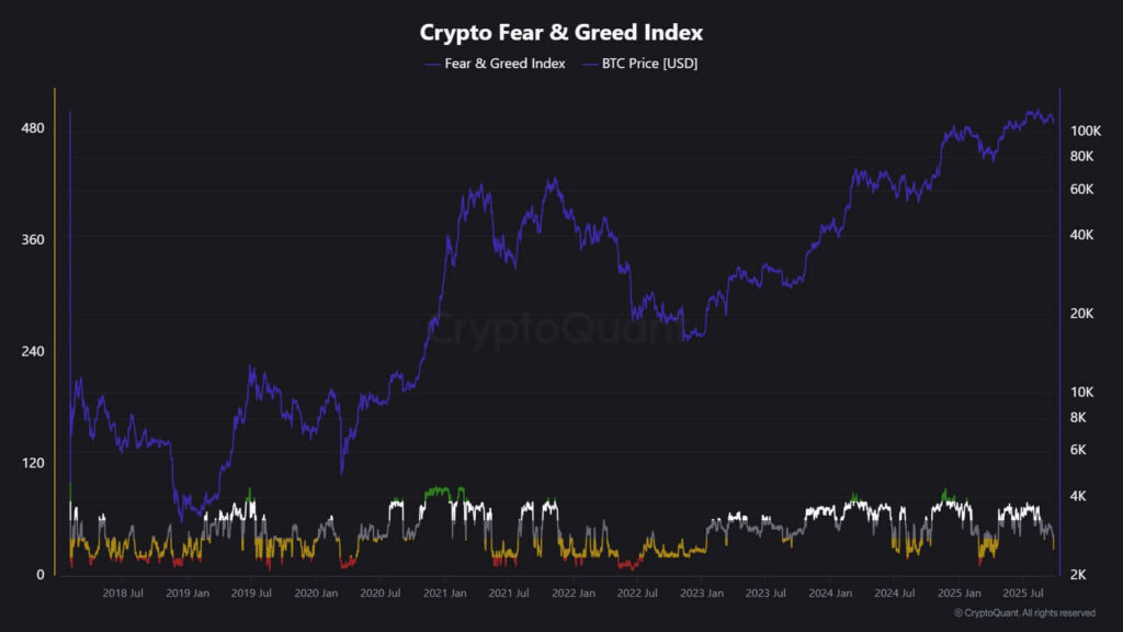 Theo báo cáo từ nhà phân tích nổi tiếng JA Maarturn thuộc CryptoQuant vào ngày 29 tháng 9, tâm lý thị trường đã giảm từ mức trung lập 40 trong tháng 8 xuống chỉ còn 28, cho thấy sự sợ hãi cực độ. Chỉ số này ghi nhận lại những dấu hiệu tương tự vào tháng 3, khi Bitcoin giao dịch quanh mức 80.000 USD.