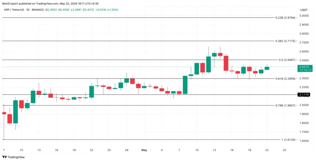 XRP hiện đang giao dịch ở mức 2.42 USD, với nhu cầu trên thị trường đang suy yếu đối với đồng tiền này. Nếu xu hướng này tiếp tục, có khả năng XRP sẽ mất đi một phần các khoản lợi nhuận đã đạt được gần đây. Trong trường hợp xấu, XRP có thể giảm xuống còn 2.29 USD, và nếu mức này không được giữ vững, altcoin có thể tiếp tục sụt giảm xuống mức 2.11 USD.