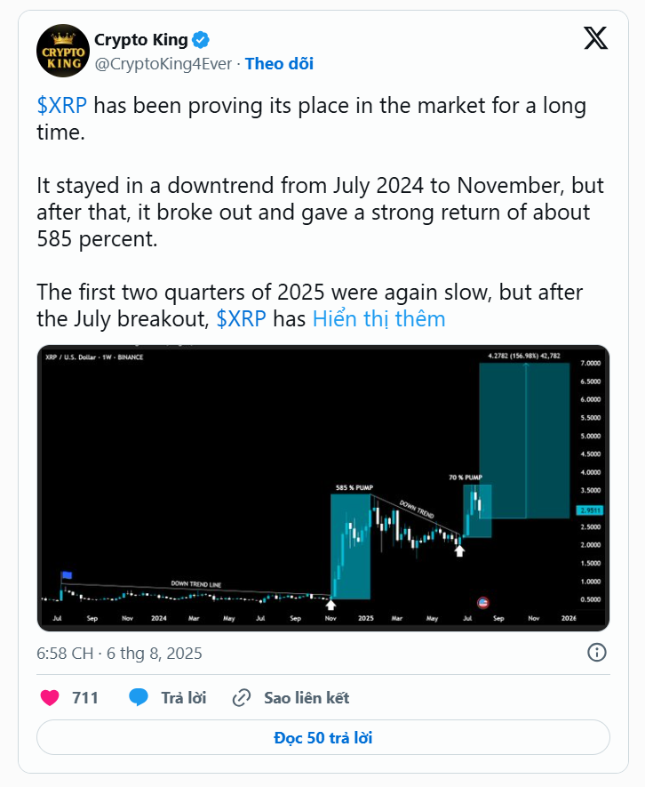 Sự phục hồi của XRP không chỉ là kết quả của đầu cơ mà còn phản ánh sự chuyển mình về pháp lý và sự tin tưởng từ các tổ chức. Sự chú ý của thị trường đang dồn về XRP, và tất cả đang chờ xem liệu đồng tiền này có thể đạt được mục tiêu 7 USD trong thời gian tới hay không. Thời điểm quyết định có vẻ như đang đến rất gần.