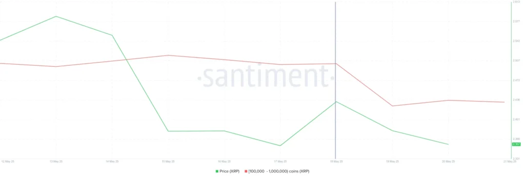 Sự ra đi của các nhà đầu tư lớn đang đặt ra nhiều câu hỏi cho triển vọng của XRP. Những nhà đầu tư này đã thể hiện sự không chắc chắn về khả năng duy trì mức giá hiện tại, điều này càng làm tăng thêm áp lực cho đồng tiền này. Sự thiếu vắng hỗ trợ mạnh mẽ từ phía các nhà đầu tư có thể tạo ra một vòng xoáy tiêu cực, dẫn đến việc giá giảm nhanh chóng hơn nữa.